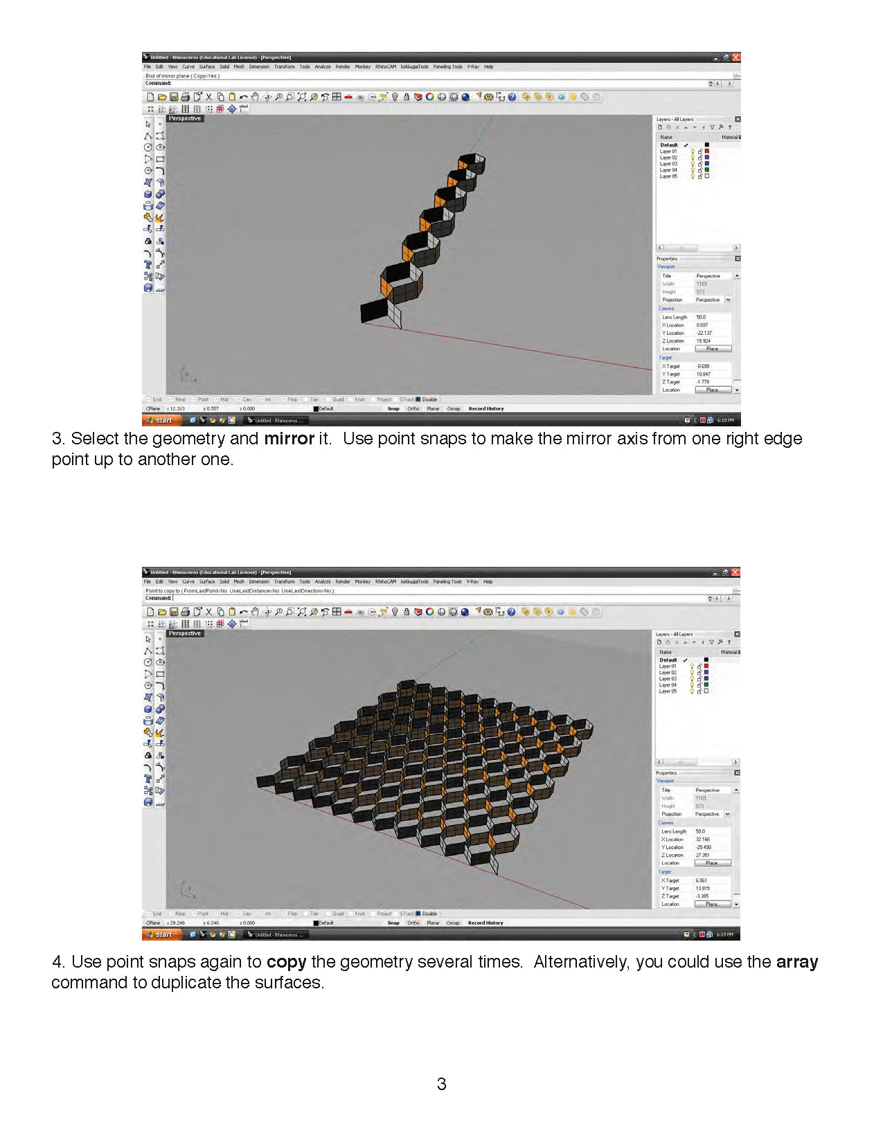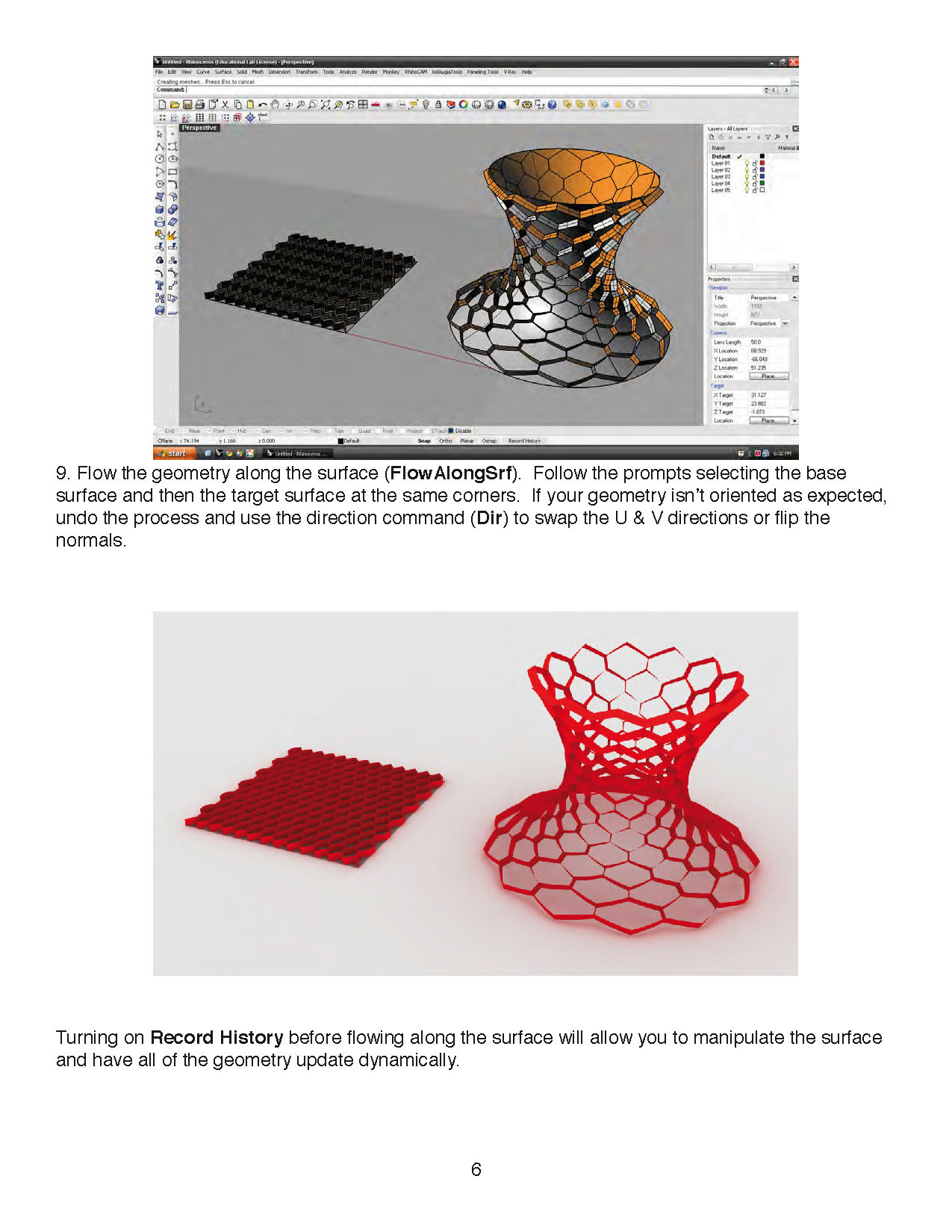 This tutorial introduces the basics of the FlowAlongSrf command and how it translates from creating patterns to forming objects. .. http://ea-pr.com/digitalworkshop/ .. thxs for this