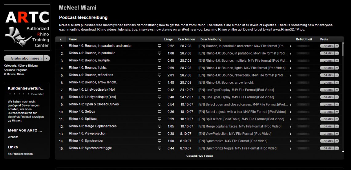 Yeah … dannach hab ich schon lange gesucht ! Nun bringt McNeel endlich Tutorials als Podcast raus. Viel Spass damit. Hoffe es ist auch für euch was nützliches dabei 🙂