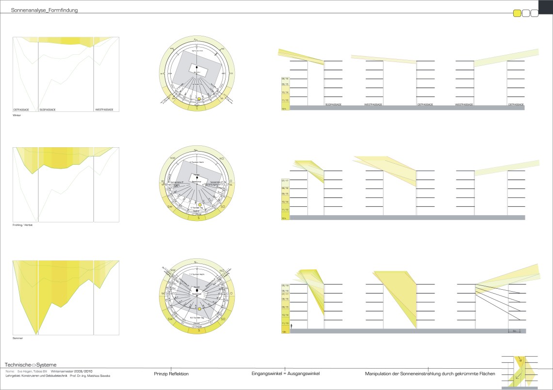 Ziel des Seminares war es eine Fassade so zu entwickeln das diese das Sonnenlicht weitest möglich in den Innenhof hinunter reflektiert.