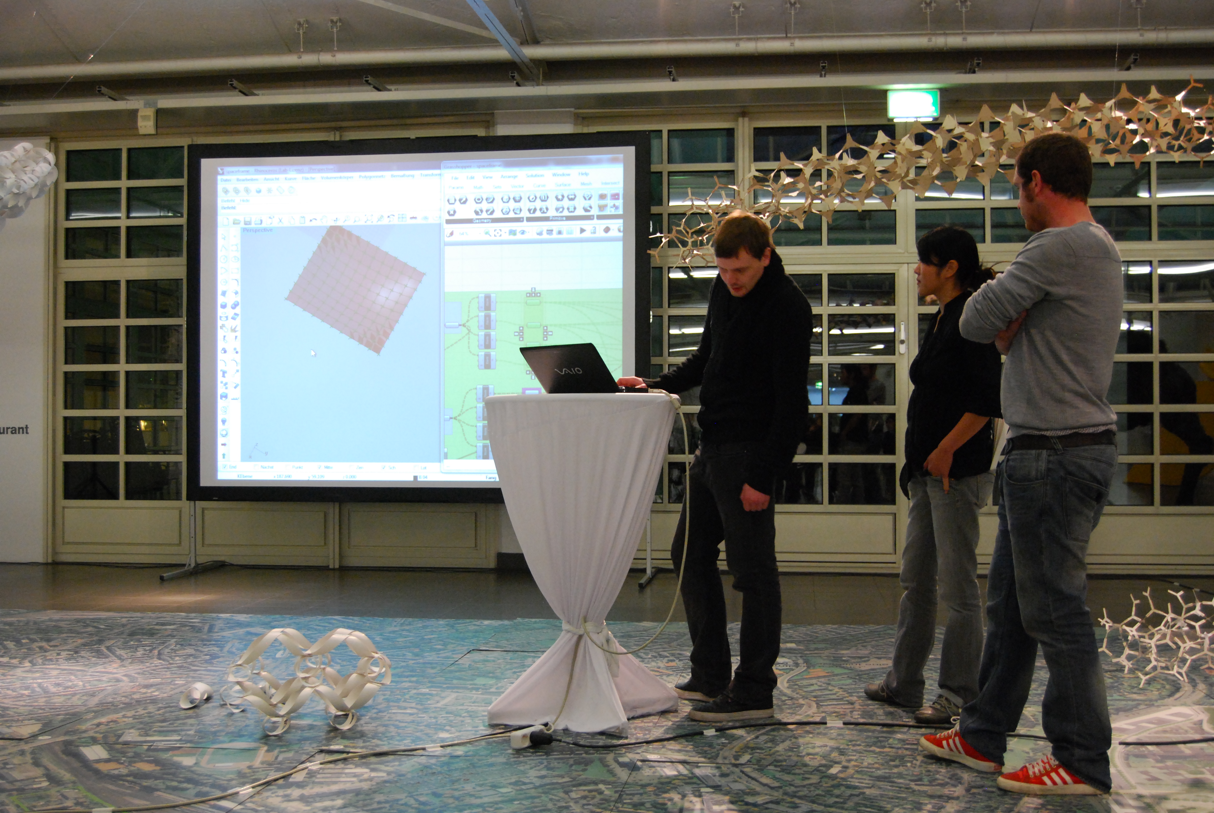 >>> In einem viertägigen workshop, der vom 08.11.2010 bis 11.11.2010 im Rahmen der Ausstellung “westarch” im Ludwigforum Aachen stattfindet, sollen die Möglichkeiten und Strategien computergestützten Entwerfens erfahrbar gemacht werden. Neben der inhaltlichen Arbeit der Studierenden ist die Interaktion mit Besuchern der Ausstellung ein wichtiger Aspekt des workshops. Diese haben so die Möglichkeit mit angehenden Architekten über aktuelle Arbeitsweisen und Tendenzen, Prozesse und Ergebnisse diskutieren zu können. <<<