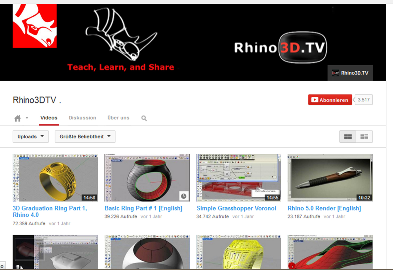 unter dem Motto „teach, lern and share“ ist der Youtube-Channel von Rhino3d.tv schon betrachtlich gewachsen. Hier gehts zum Channel RHINO3D.TV-YOUTUBE