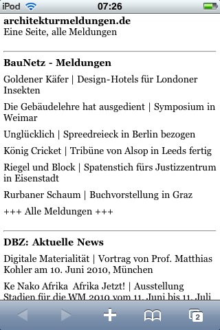 In dieser Web_App findet ihr die aktuellen Schlagzeilen der wichtigesten deutschsprachigen Portale aus dem Architektur- und Immobilienbereich.