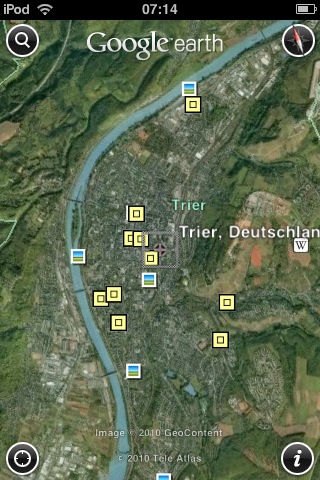Der  Download bietet wie die Desktop-Variante hochwertige Satelliten- und Luftaufnahmen, man kann die Erde aus der Vogelperspektive oder in 3D-Ansicht überfliegen und den Flug durch kippen des iPhone steuern. Zudem hat man die Möglichkeit, die gewohnten Google Suchfunktionen zu benutzen, Wikipedia-Artikel geografisch anzeigen zu lassen und Zugriff auf mehr als 8 Millionen Panoramio-Fotos.