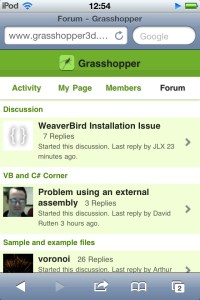 Alle die Rhino 3d benutzen kennen sicherlich auch das Plugin Grasshopper. Diese Web_App biete jetzt die möglichkeit an Diskussionen, Fragen und Antworten per Iphone zu äußern.Ich könnt noch euer Profil einsehen bearbeiten usw. Ne klasse Sache wenn man Fragen hat und schnell einen Antwort braucht ! :D. Diesen Link  Grasshopper im  Iphone Browser eingeben. Dann per Mittler Taste “ zum Home Bildschirm“ auswählen.Abspeichern. Fertig! Addet mich da ! Mein Name dort wie hier tobi haptik.