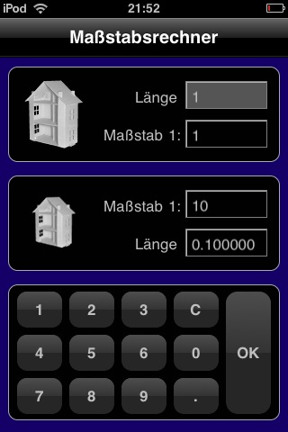 Sie können den Maßstab des Originals und des Modells eingeben, danach tippen Sie einfach die Längenmaße des Originals nacheinander ein und das Programm zeigt Ihnen die skalierten Maße für das Modell. Sehr einfach und doch nützlich.