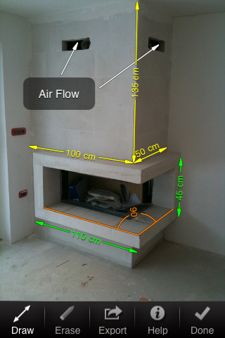 Mit Hilfe dieser App können Architekten das ein Aufmaß direkt als Wert im Bild angeben. Sehr nützlich !
